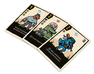 After the animals claimed the farm for themselves, a feud immediately ignited among them, even though humans are still trying to reclaim the place. Pumpkins secure their prosperity, so it's a race for the pumpkins before the humans return! Players take turns drawing, recruiting, and activating cards, whether to harvest pumpkins, fight other farm animals or use special abilities. No means will be spared and the animals can and will fight dirty. The game ends immediately when the fourth Farmer card is drawn, or when a player collects 5 Pumpkins!